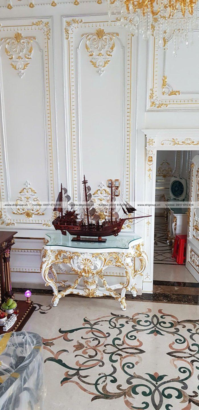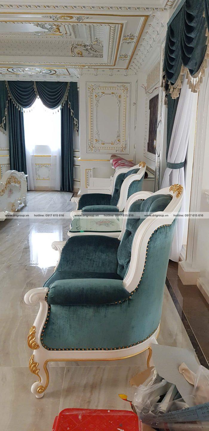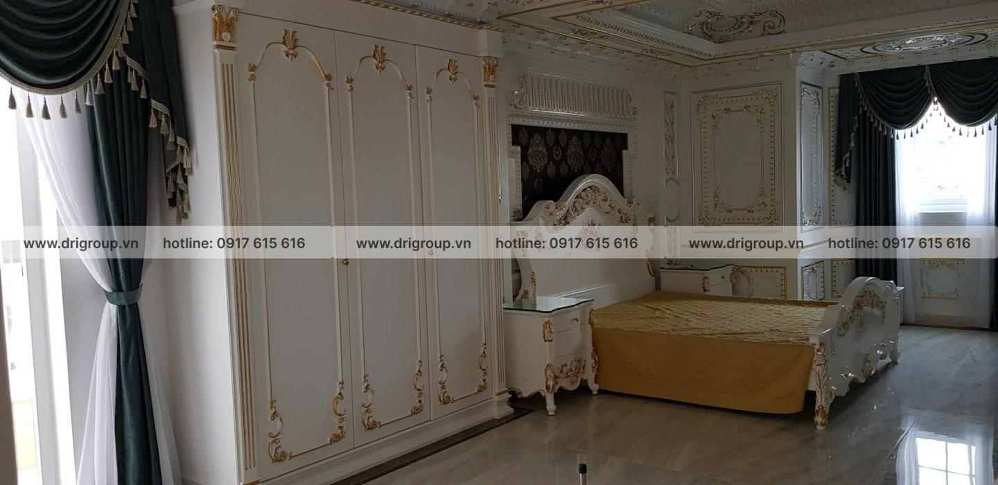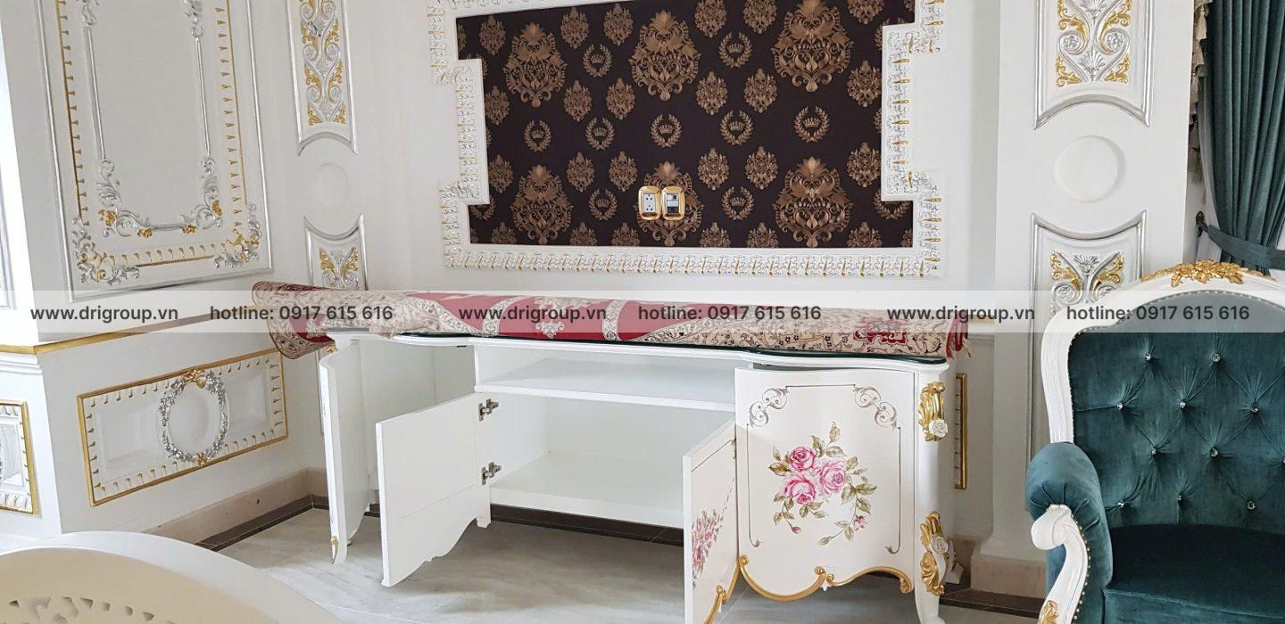 Từ hệ phào chỉ tường, hoa văn chạm nổi, đến những món nội thất tinh xảo như ghế bọc nhung cao cấp, tủ hoa văn sơn tay, rèm màu ngọc lục sang trọng, tất cả đều được DRIGROUP chăm chút tỉ mỉ trong từng công đoạn sản xuất và thi công. Mỗi chi tiết thể hiện rõ triết lý thiết kế của DRIGROUP: “Đẹp là sự hài hòa giữa thẩm mỹ, công năng và cảm xúc sống.”