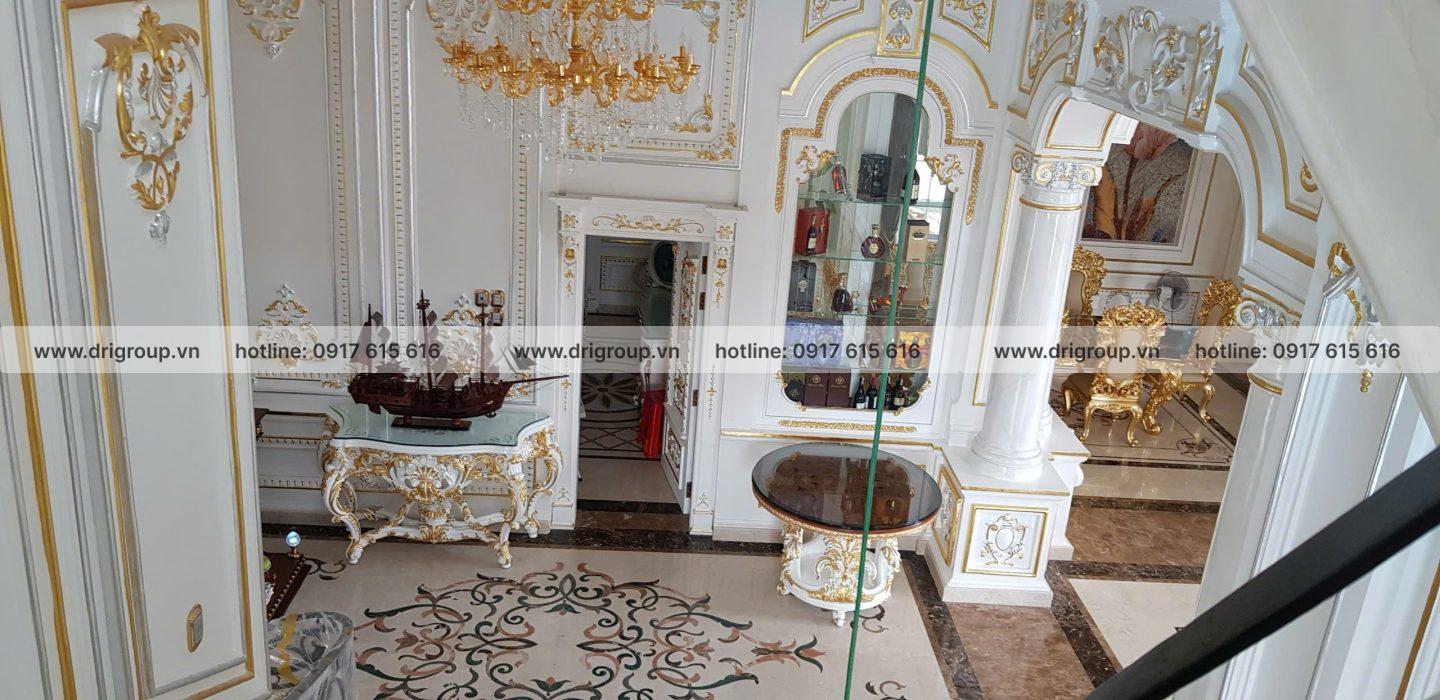 Dự án Biệt thự Nhà Bè được DRIGROUP thiết kế và thi công theo phong cách Tân cổ điển châu Âu, kết hợp tinh tế giữa đường nét nghệ thuật và sự sang trọng hiện đại. Không gian nổi bật với gam màu trắng chủ đạo, điểm xuyết vàng kim và họa tiết hoa văn thủ công, tạo nên cảm giác quý phái, thanh lịch nhưng vẫn ấm áp và gần gũi.