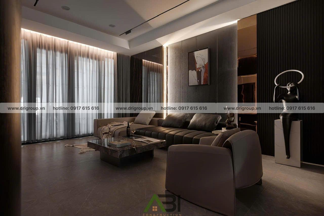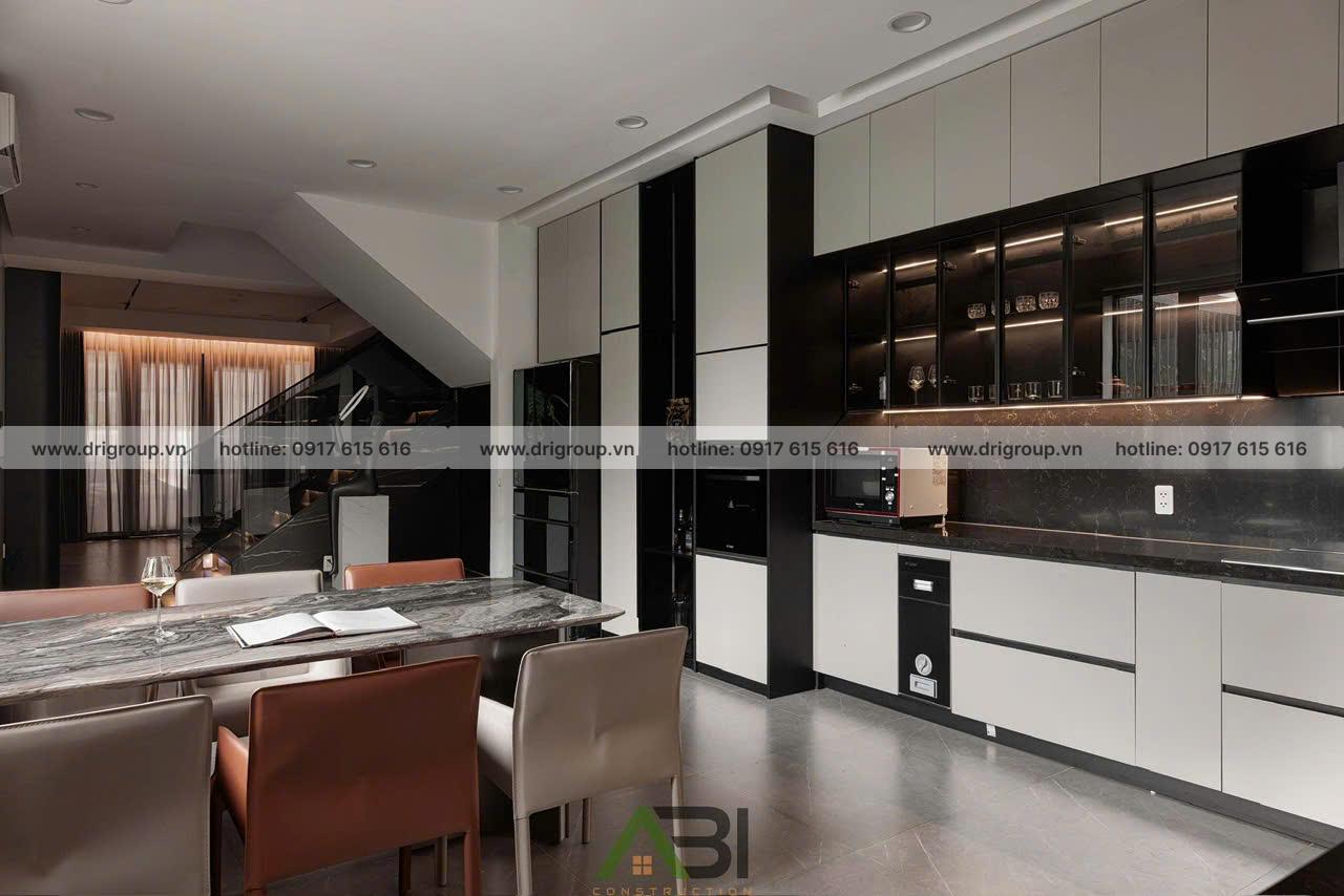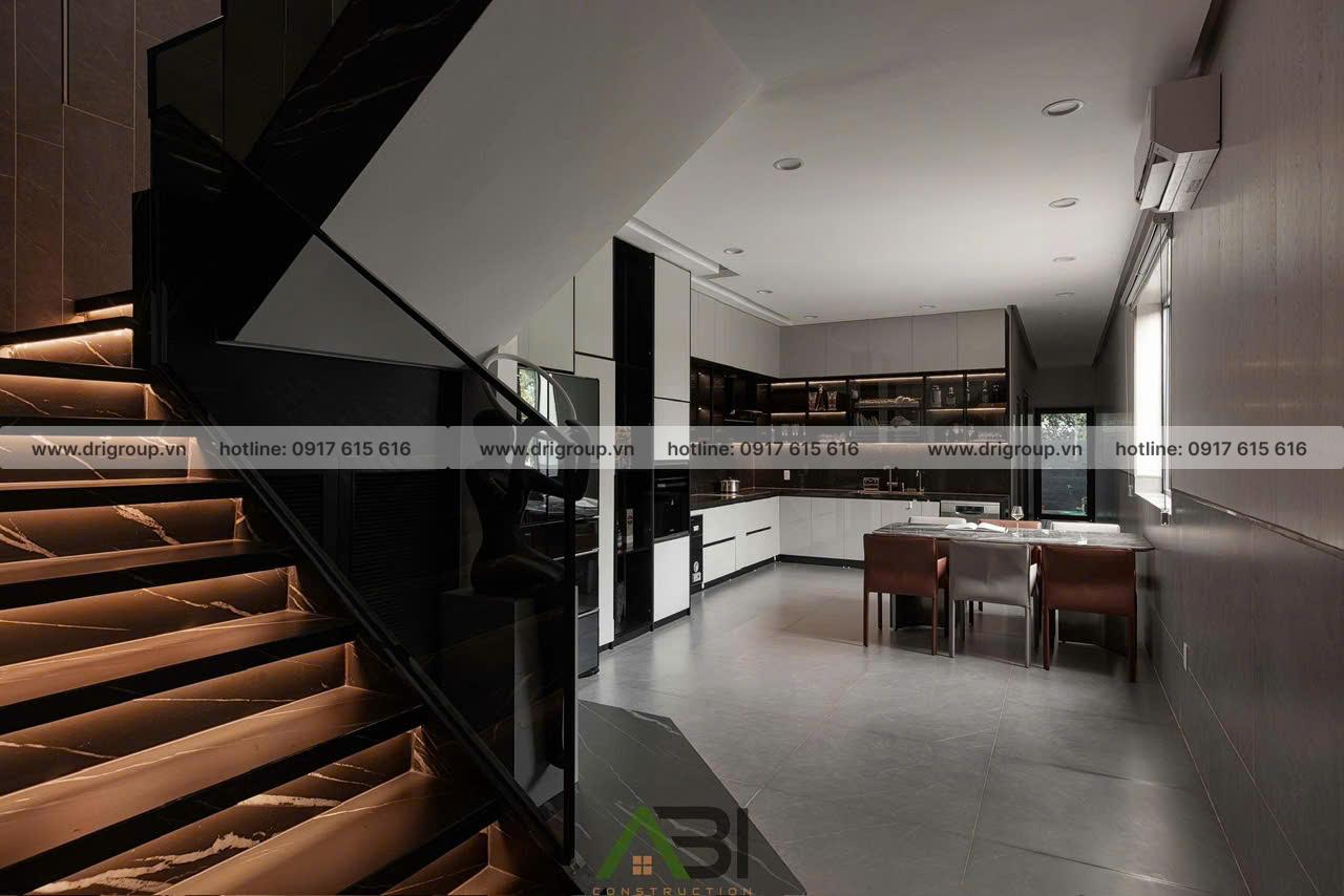 Dự án Nhà Phố Quận 7 được DRIGROUP triển khai theo phong cách Modern Luxury với gam màu đen – nâu – xám chủ đạo, kết hợp ánh sáng điểm để tạo nên tổng thể tinh tế, sang trọng và đậm chất cá tính.